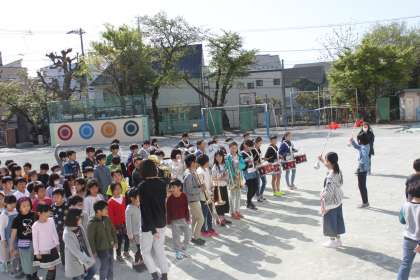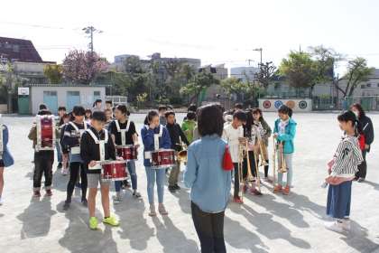 今日は初めて校庭で演奏をしました。
