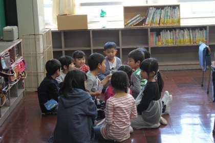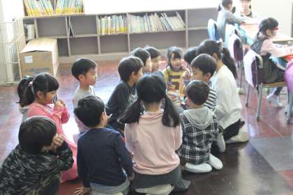 トランプをしたり、折り紙をしたり、読み聞かせをしたり、仲良くなろうとする6年生。