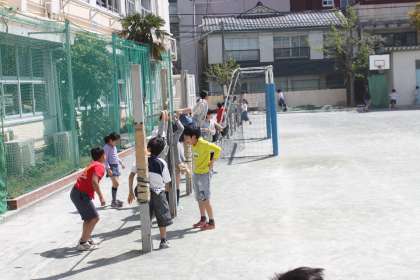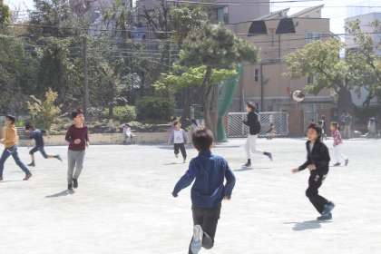 先生も一緒に走り回り、とってもにぎやかな校庭でした。