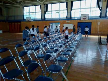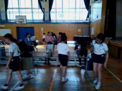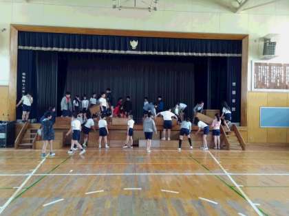 授業と授業の合間の時間に、会場設営を担当するのは6年生。
