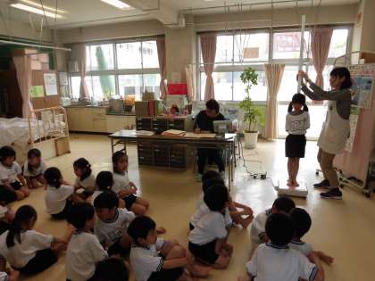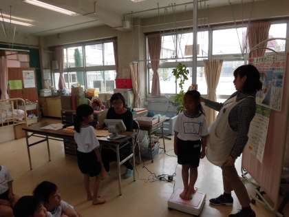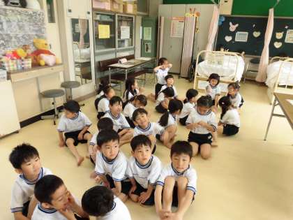 保健室の先生もかわいい1年生をみて、思わずにっこり!