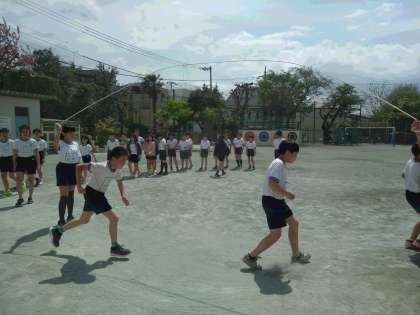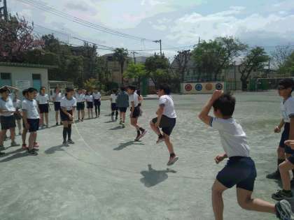 みんなの心を一つに合わせて、一心不乱になわに飛び込む6年生でした。