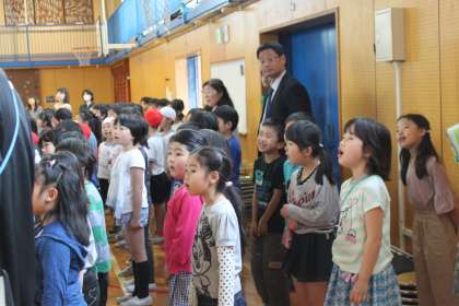 今年度初の音楽朝会でしたが、元気いっぱいの歌声でしたね!