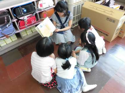毎日やさしい6年生が中休みに、遊びに来てくれます。1年生は新しい遊びを教えてくれる6年生が大好きです。明日も6年生と沢山遊ぼう!