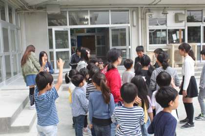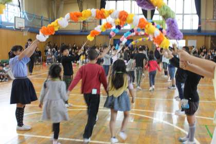 1年生を迎える会の後は、6年生と一緒に校庭で遊びました。