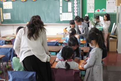休み時間にも、学力調査の合間に1年生に会いにくる6年生もたくさんいました。