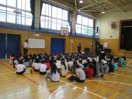 あいにくのお天気だったため、体育館での受講でしたが、みんな真剣な表情で受講していました。
