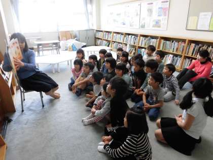 本日は1年生が、本や図書室の利用の仕方について学習しました。また絵本の部屋で、読み聞かせをしてもらうなど楽しい時間を過ごせたようです。上履きも、こんなにきれいに並べられます!みなさん、図書室には沢山面白い本があるので、ぜひ本を借りたり、読みにきたりしてくださいね!