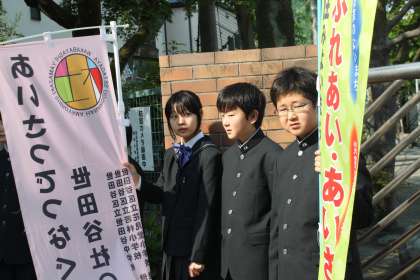 今朝も世田谷中学校の生徒さんや地域の皆様が来校してくださいました。