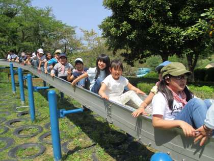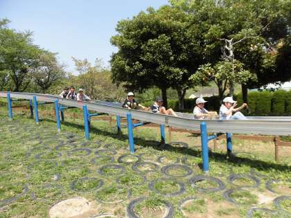 オリエンテーリングの途中で、ローラー滑り台を満喫!