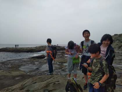 相模湾に洗われる荒々しい岩場で、神経を研ぎ澄ます高学年でした。