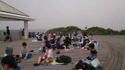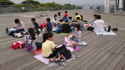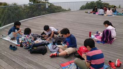 海の近くということもあり、トンビが飛んできました。みんなで気を付けながらお弁当を食べています。
