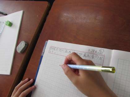 学習のめあてをノートに書くことはとても大切なことです。めあてを書くことで学習に対する構えができますし、ノートにきちんと記録したり自分の考えを書いたりすることにもつながっていきます。社会科の学習に取り組んでいた3年生のクラスを見に行くと、丁寧にめあてを書くところから始めていました。