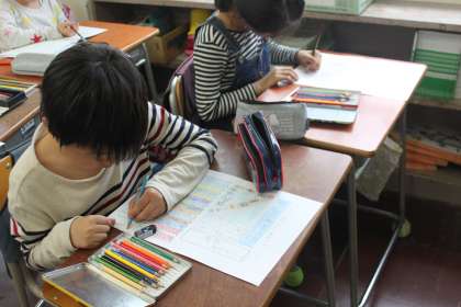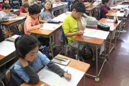 代わりに来た先生と一緒に、担任の先生をびっくりさせようと、ますます頑張る4年生でした。