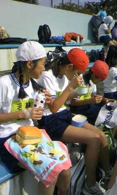 午前中の競技を終えて、昼食です。午前中は女子の個人と女子・男子リレ—でした。