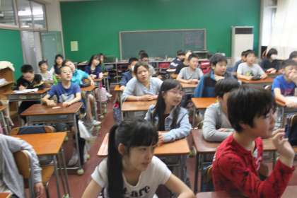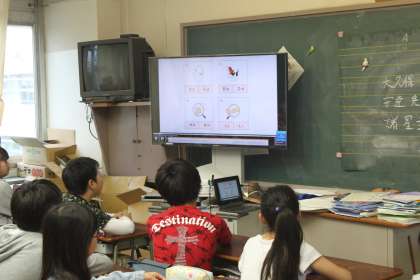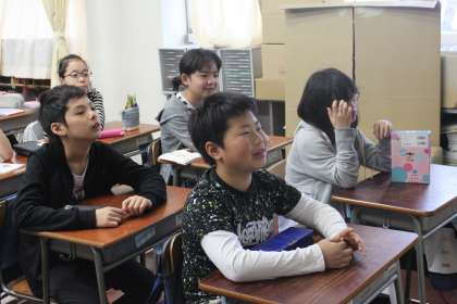 6年生たちももちろん、朝の15分間を外国語の学習に充てています。
