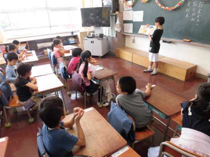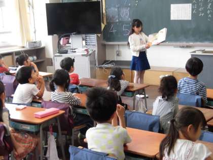 6年生のお兄さん、お姉さんたちが1年生に読み聞かせをしてくれました。いつも遊んでくれる6年生が読みきかせをしてくれたことで、本を身近に感じられ、楽しいものだと思えました。6年生の皆さんまたよろしくお願いします!