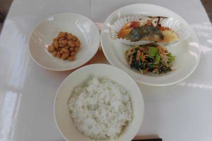 【献立】ごはん・魚のみそマヨネーズ焼き・野菜のごまだれかけ・ぶどう豆