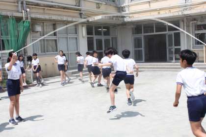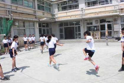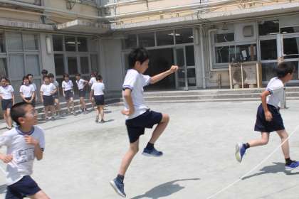 リズム感を大切に、子どもたちのやる気がみなぎる校庭でした。