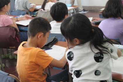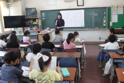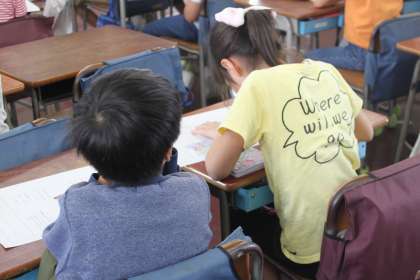 詩「竹」をみんなで音読した後、詩のイメージをワークシートに書き込みます。