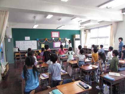 入学式から1か月が経とうとしています。学校生活に慣れてきた1年生。学習も本格的になってきました。それぞれのクラスをのぞいてみますと、算数や教科日本語の学習にがんばっていました。まずは、教師や友達の話を、言葉をはさまず、最後まで聞ける子になってほしいと思います。それが、みんなで学んでいくために、まず大切なことになります。