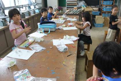 2年生は図工の時間に紙粘土に色をつけて行う造形をしました。