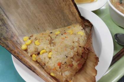 笹の葉の香りがして、いつものごはんとは一味ちがったおいしさでした。調理師さんたちが、子どもたちの健康とすこやかな成長を祈って、朝早くから奮闘してくれたおかげで出来上がった『中華ちまき』です。