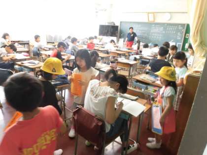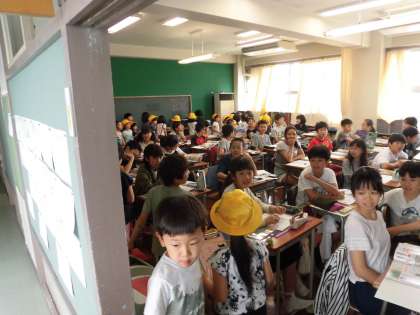 学校探検では、6年生の教室に入り、6年生が勉強している姿を身近に見ることができました。優しい6年生による温かいお出迎えにより、多くの1,2年生が6年生の教室に足を運びました。