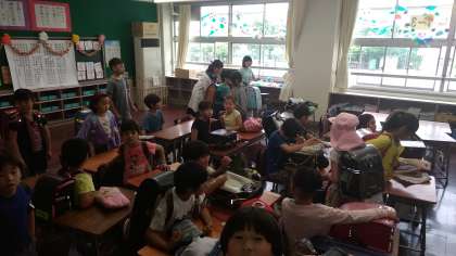 1年生から6年生までが集まりましたが、班長の活躍で自己紹介が進んでいきます。