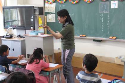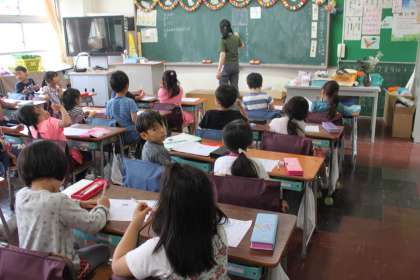 1年生は国語の時間に、ひらがなの「う」を練習しました。