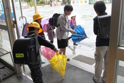 かわいい1年生たちは、雨にも負けず元気いっぱいに登校してきてくれました。
