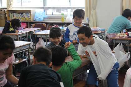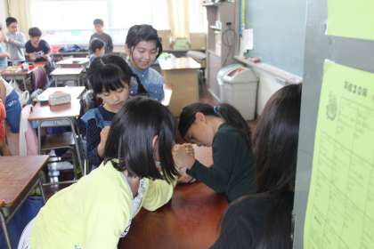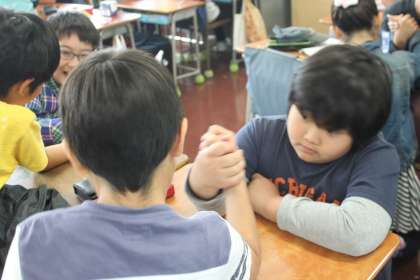 休み時間の4年生の教室では、なぜか腕相撲が流行中。