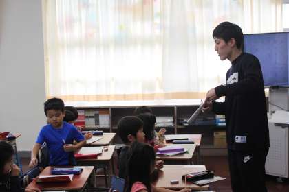 先生のお手本を見ながら、じっくり鉛筆をもちます。