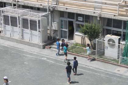 1、2年生が遠足にいっていることもあって、いつもよりも広々とした校庭。