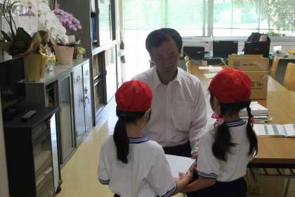 1年生が出欠確認の結果を校長室に報告にやってきました。