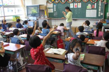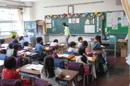 1年生は国語の時間に、ぱ、ぷ、ぺのような「まる」のつく言葉の学習をしました。