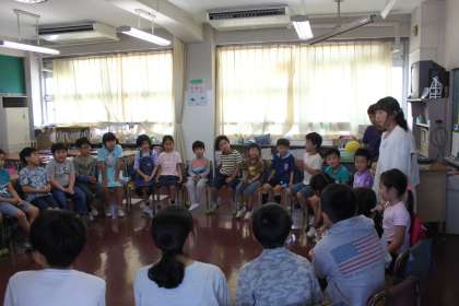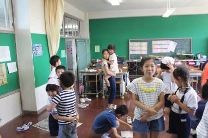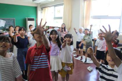 班長さん企画の楽しい遊びで盛り上がる子どもたち。