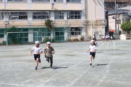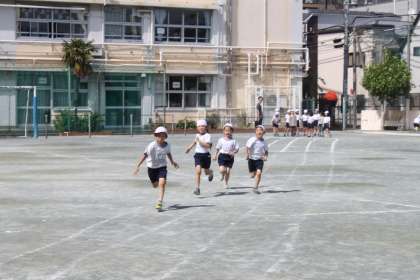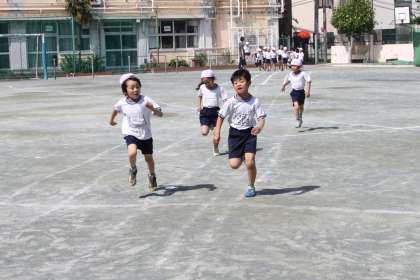 若小の校庭いっぱいを使った50m。