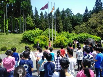 お弁当をたべ、開室式を行いました。3日間協力して生活します。