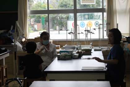 歯科校医の田中先生が来校してくださり、全員丁寧に検診をしてくださいました。