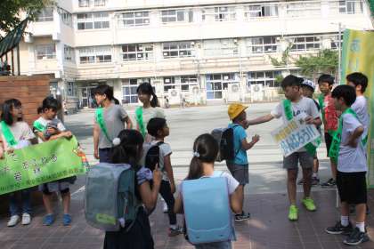 下級生たちも来週から順番に、あいさつ運動を行います。