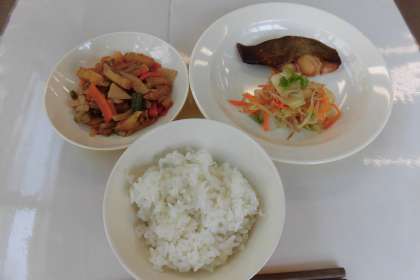 【献立】ごはん・魚の照り焼き・おひたし・きんぴら風炒め煮・牛乳