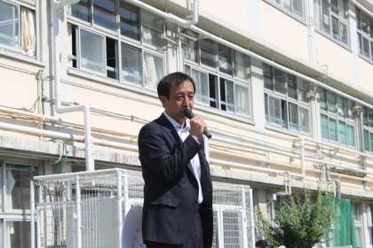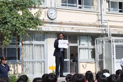 6年生の代表児童のあいさつに続いて、校長先生からは若小の名前についてのお話がありました。