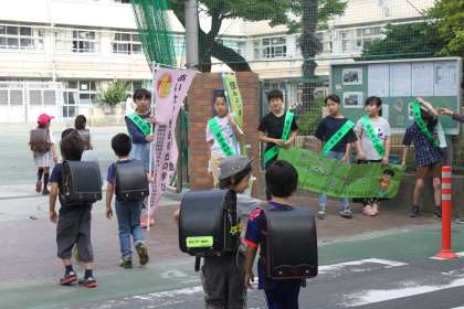 5年生が行っている学年別あいさつ運動が最終日を迎えました。