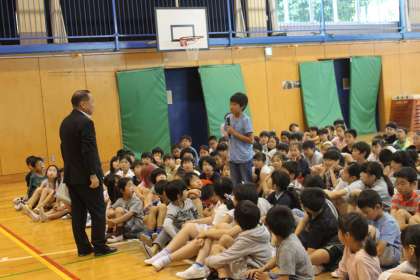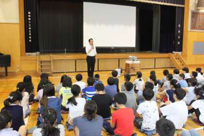 世田谷警察署少年係から、係長さん自ら出陣しての熱のこもった講演に、子どもたちも真剣に聞き入っていました。
