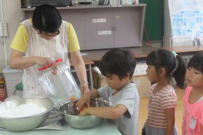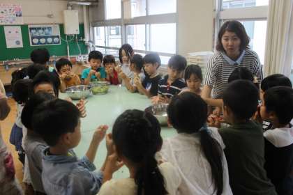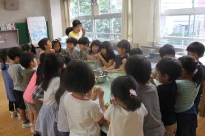 1年生が、学校の敷地内になっている杏と梅で、ジュースをつくりました。