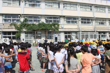 6年生に合わせて、みんなでしっかりとあいさつをしました。
