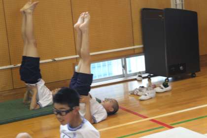 6年生は体育の時間に、昨年度の組体操の振り返りを行いました。