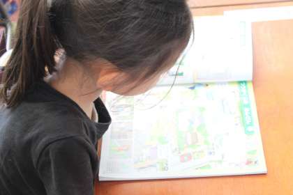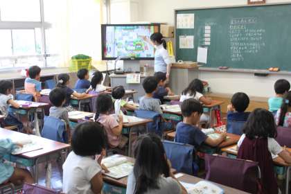 教科書に載っている絵から、安全に関係するものを見つけます。