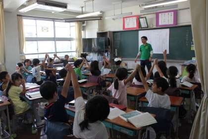 先生の質問の答えが分かった子が、一斉に手を挙げました。